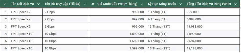 FPT Telecom xin gửi đến Quý Khách hàng bảng giá cước các dịch vụ như sau: